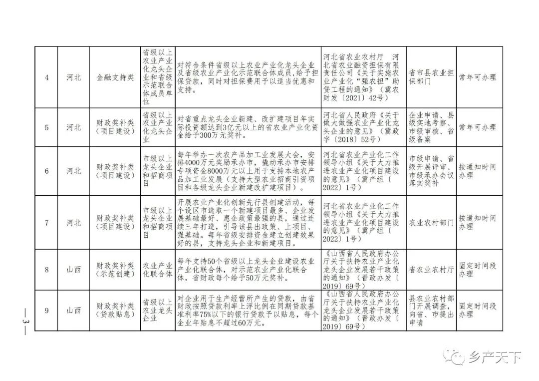 農業(yè)產(chǎn)業(yè)化龍頭企業(yè)支持政策清單