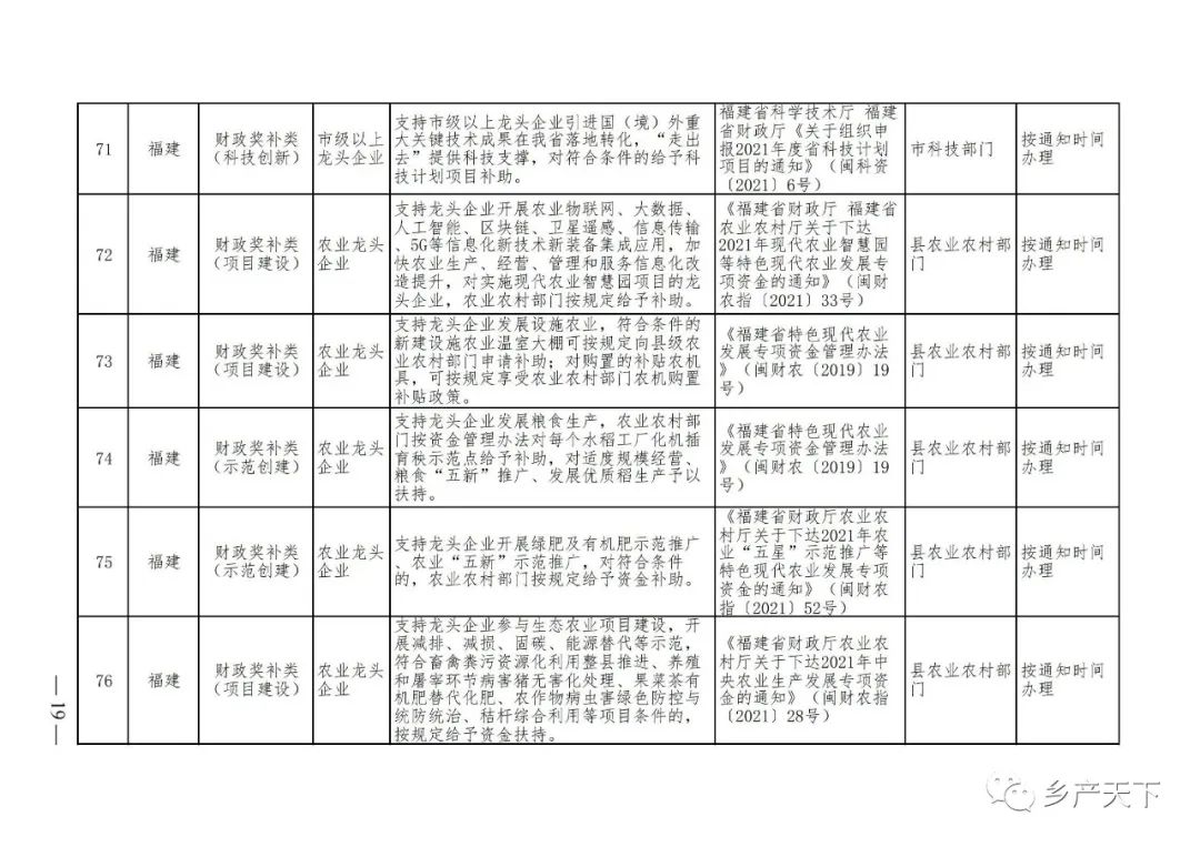 為加強對農業(yè)產(chǎn)業(yè)化龍頭企業(yè)的精準服務(wù),農業(yè)農村部鄉村產(chǎn)業(yè)發(fā)展司收集了各?。▍^、市)對龍頭企業(yè)的支持政策,于近期印發(fā)《農業(yè)產(chǎn)業(yè)化龍頭企業(yè)支持政策清單》(簡(jiǎn)稱(chēng)《清單》),供各地互相參考學(xué)習。