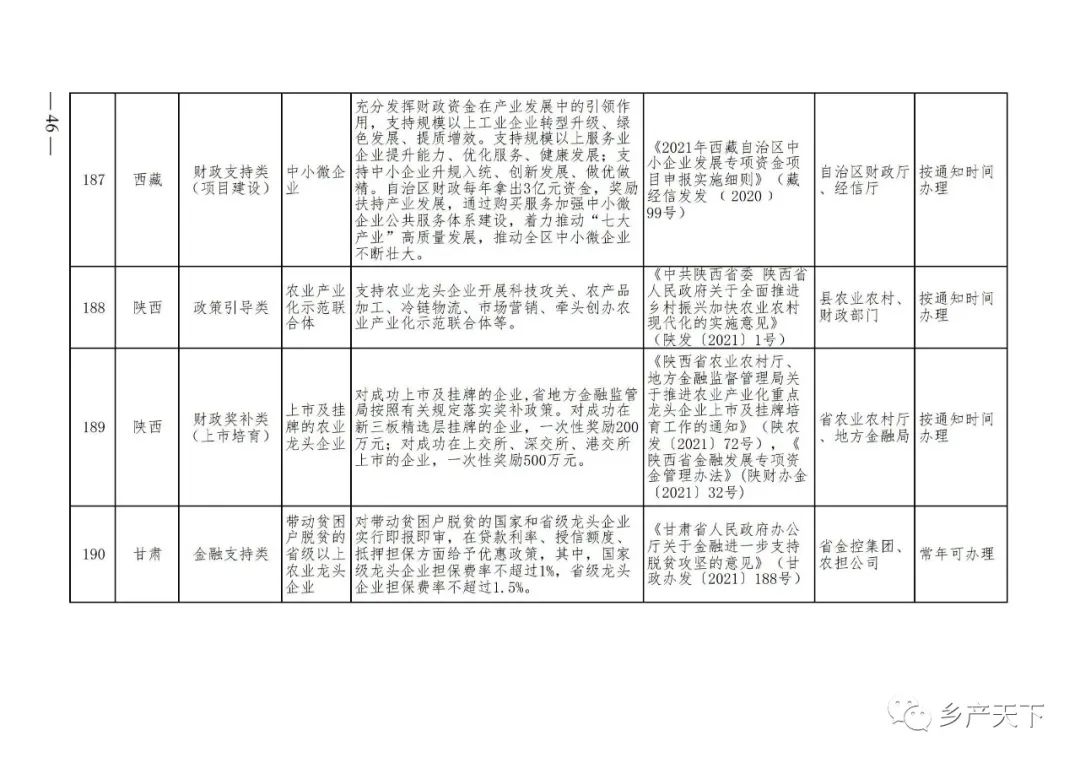 229項!各省支持農業(yè)產(chǎn)業(yè)化龍頭企業(yè)的政策都在這里